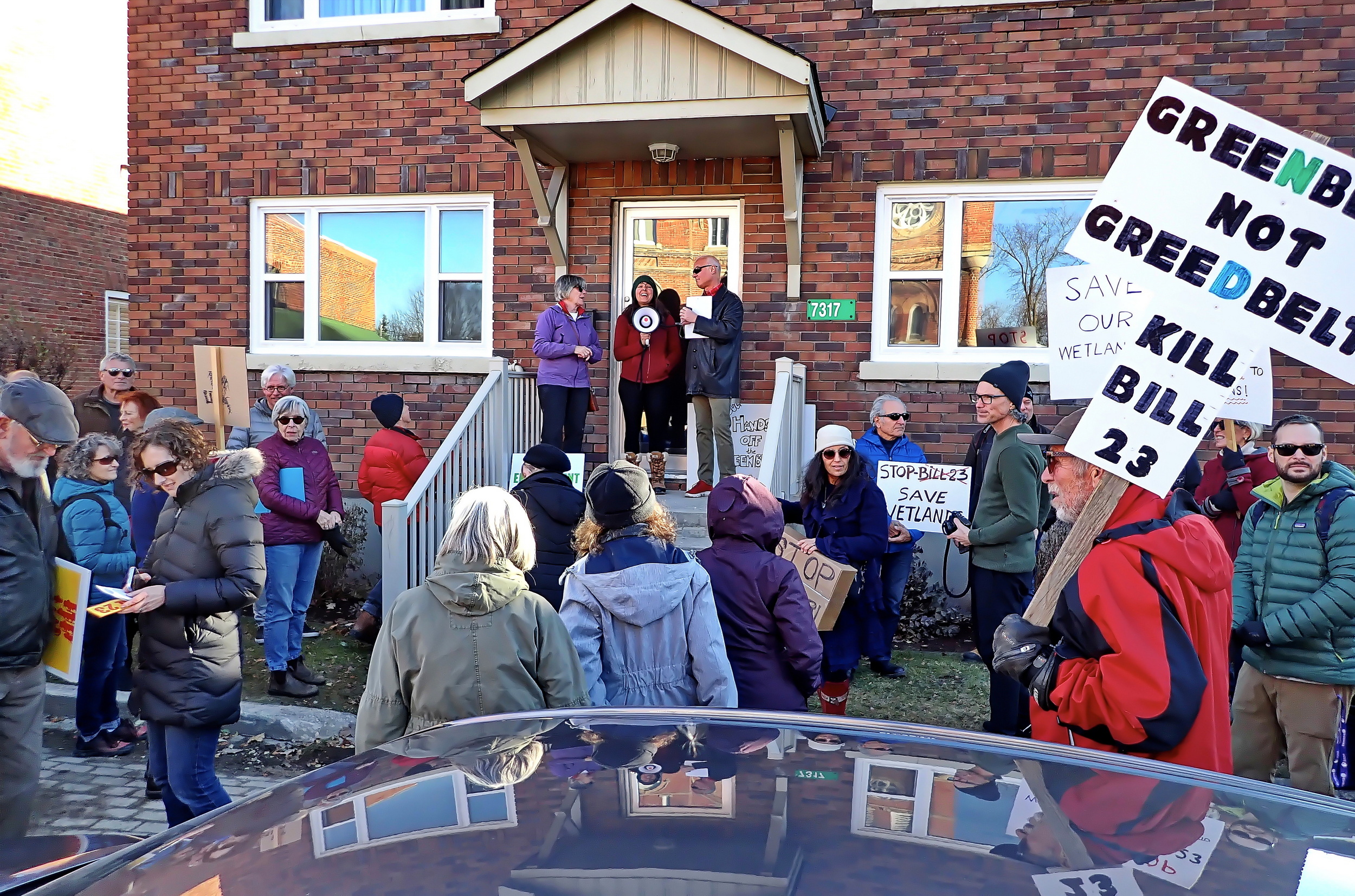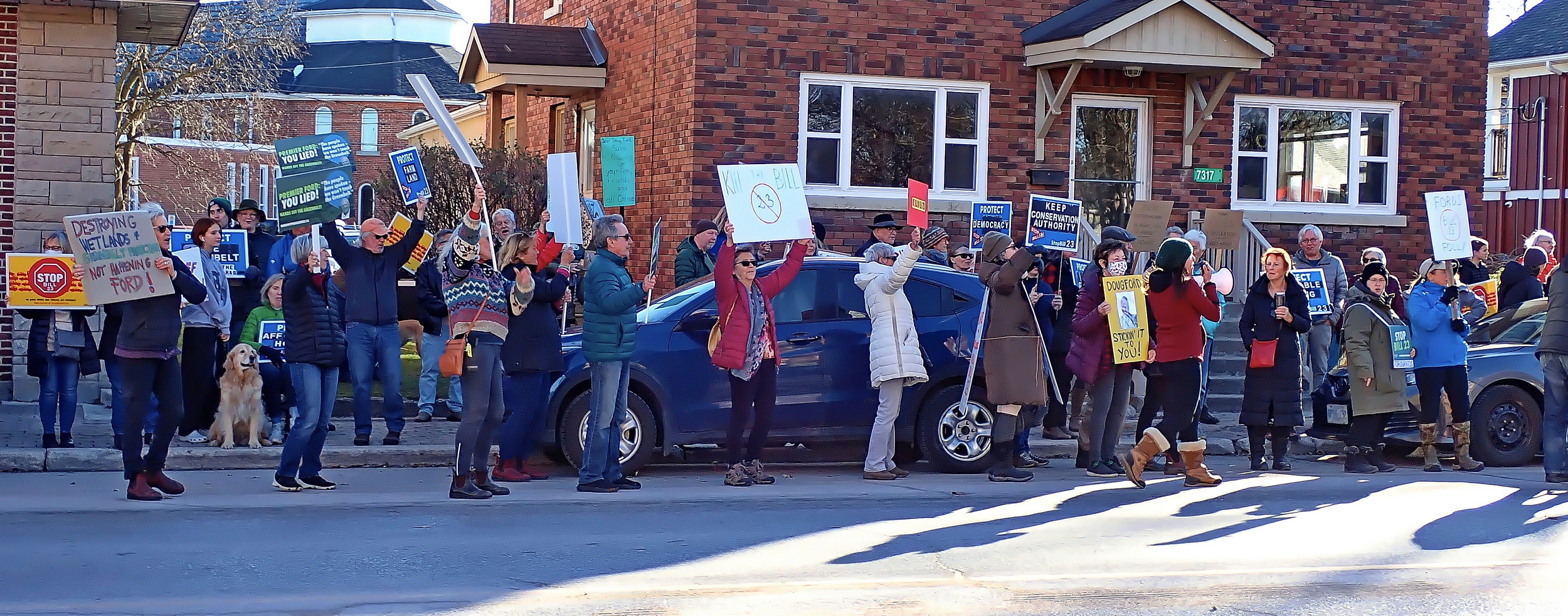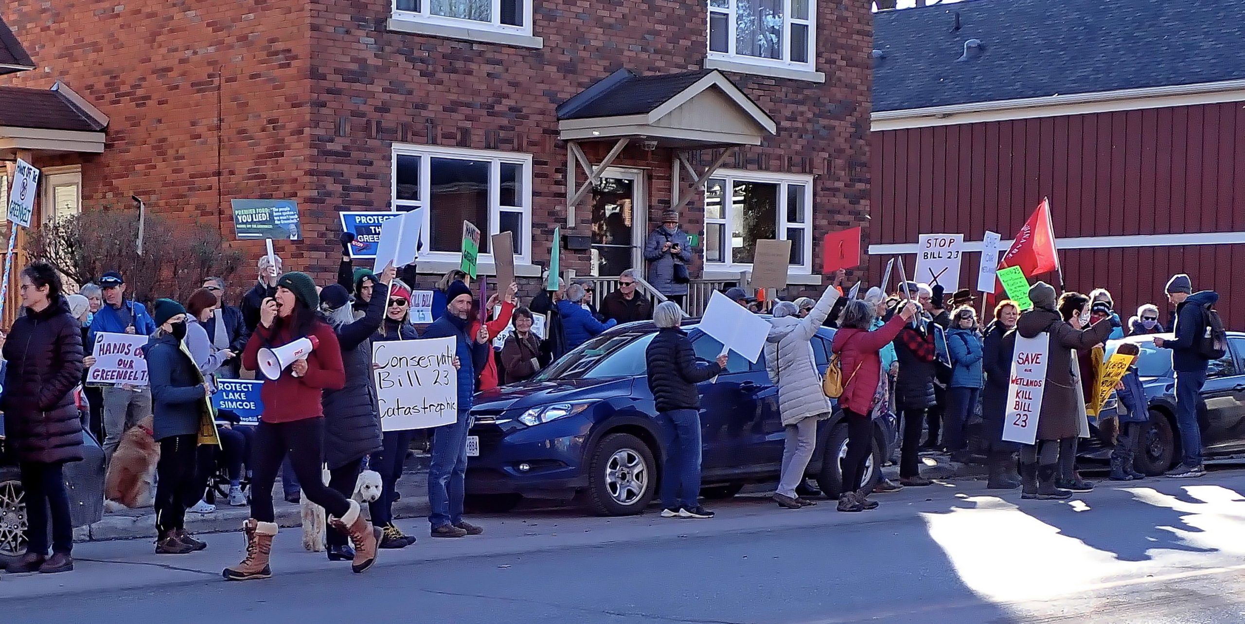 The Blue Mountain Watershed Trust continues our fight against Bill 23 and its plan to bulldoze our wetlands and green spaces,  joining the Protest Rally in Stayner on Saturday Nov 26th outside MPP  Brian Saunderson’s office.